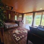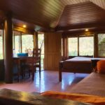 We have 4 Tree houses set deep inside the estate and it cut off from the main resort area and you will feel that you are the only human in the world. The tree houses are 20 feet high, spacious and gives excellent views of the Jungle and mountains beyond. If you are looking to stay far away from humans, this is an ideal option for you. Electricity is provided by batteries charged by solar, so you won’t be able to use any high-wattage devices. Charging points are available in your tree house to charge your cameras and phones. Each tree house has a double bed and a single bed, can comfortably sleep 3 adults. Since you are inside the Jungle, you will be able to see wildlife from your tree house and so complete silence is a must. The tree house would have a covered balcony, an open balcony, a large airy bedroom opening out into the wild and a bathroom with running water and there is a caretaker always at the ready to assist you with your needs.